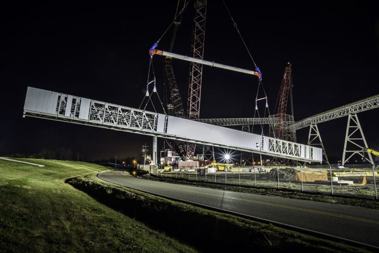 - Lifts were 310′ and 260′ LF long conveyor truss sections, weighing 250 Tons and 210 Tons, respectively